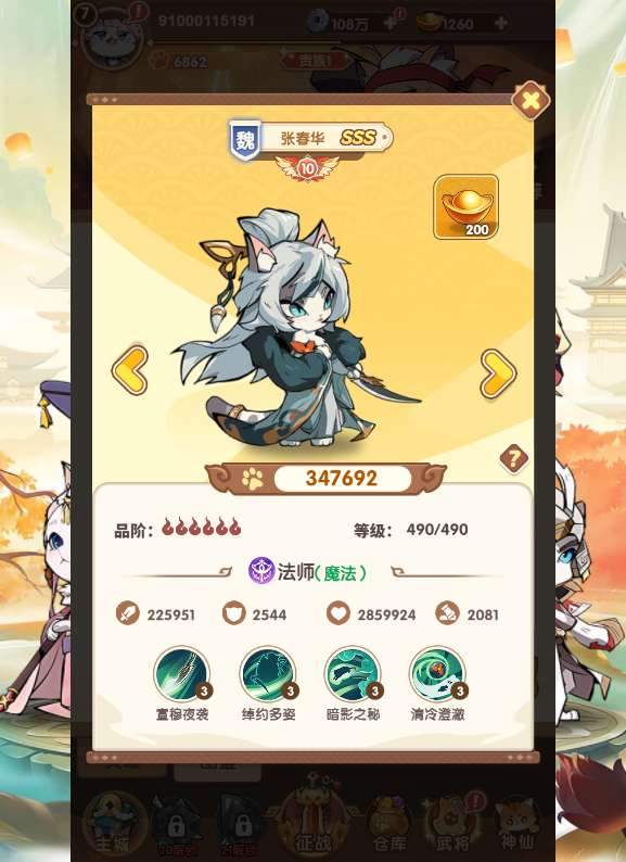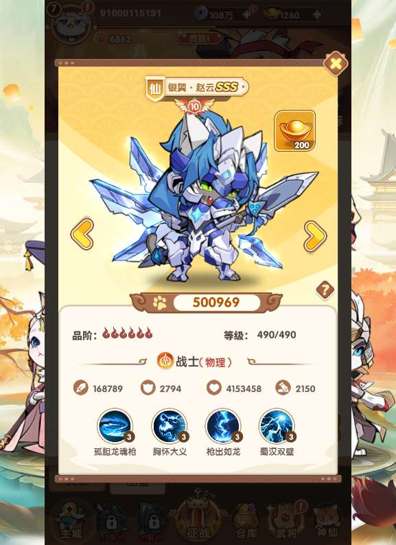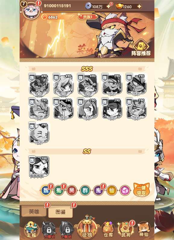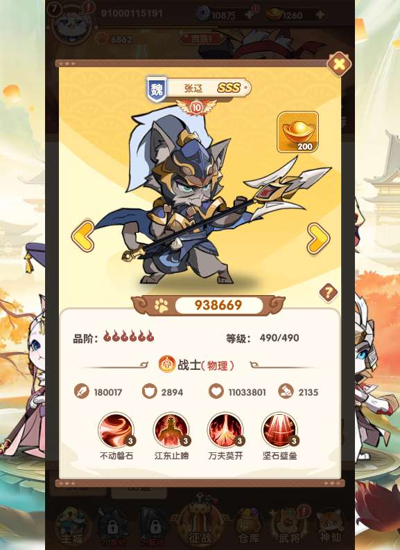 4.更新武将为一键升级,一次最多可以一键升100级!